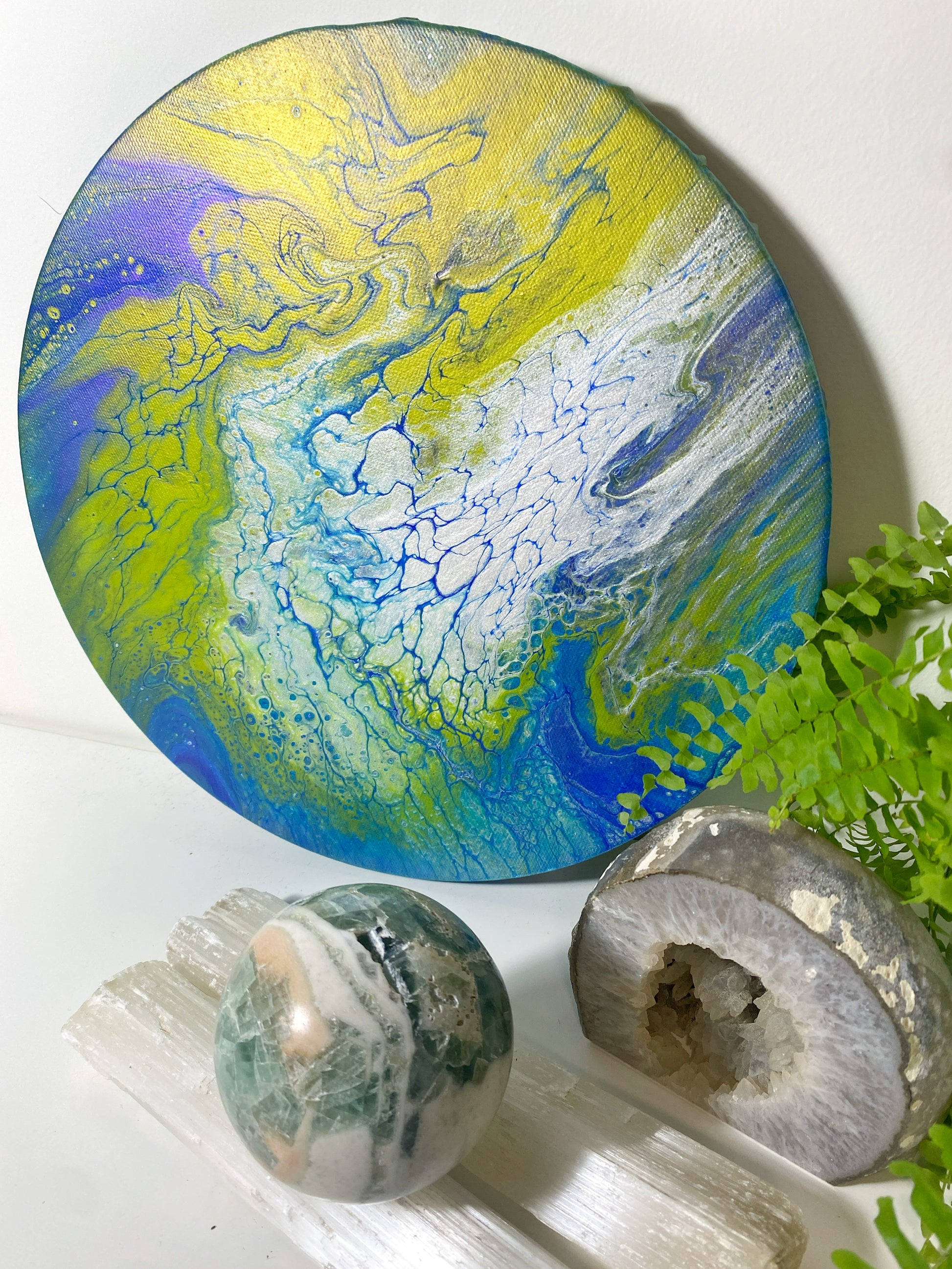 New Earth Art Portals incorporate flash paint, New Moon water (a powerful tool to bring forward new intentions), intention setting, reiki energy, and frequency imprinting. Designed with intricate details to engage on multiple levels, this piece invites the viewer into a meditative state - facilitating a deeper connection with transformative energies, and serving as a visual anchor for a New Earth unified in love.