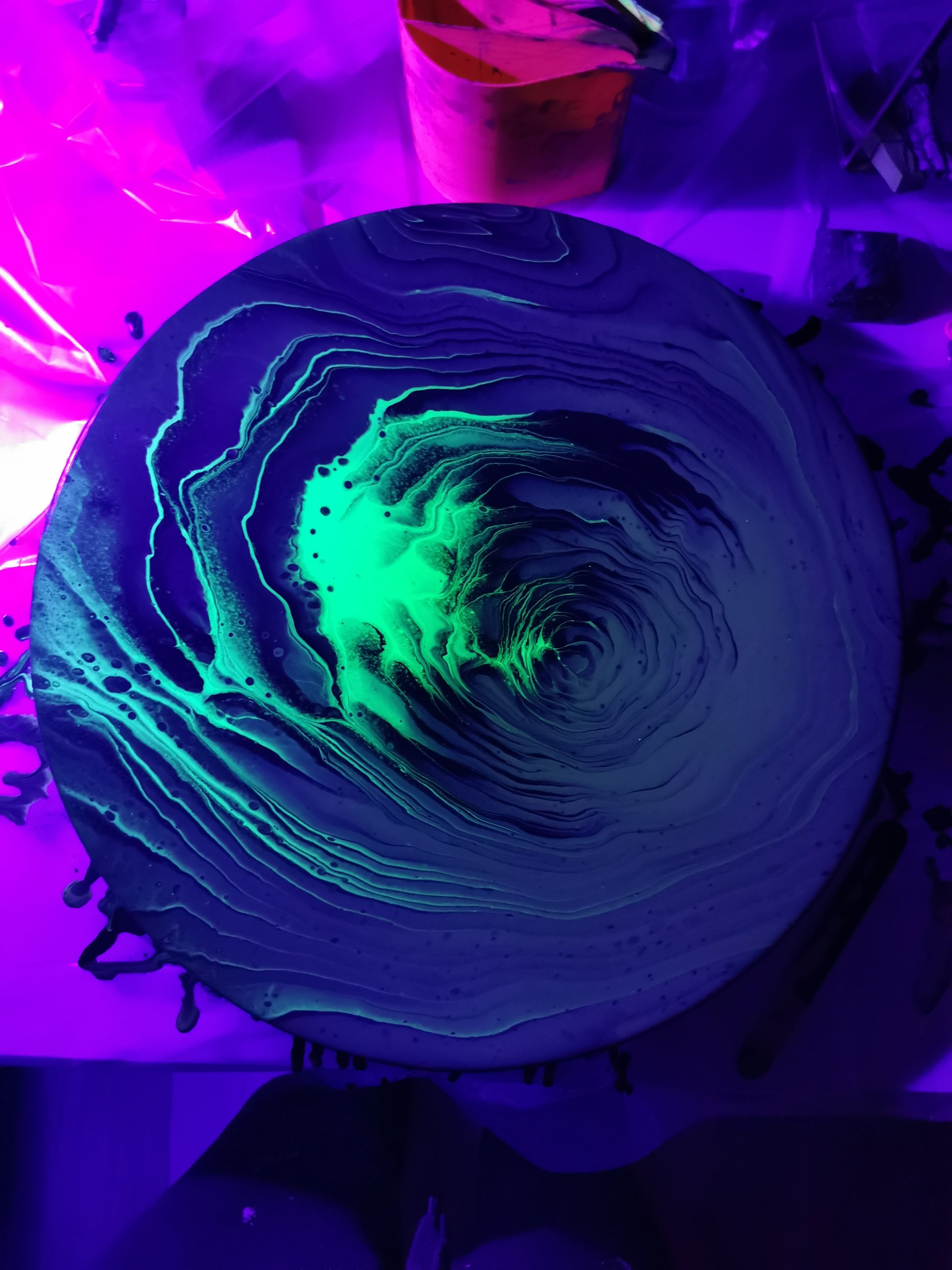 Colors used in this piece: UV reactive Neon Green, Green Flash (to gold), Mars Black.
